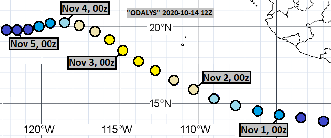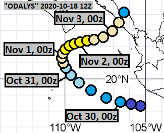 I made thirteen tracks of Tropical Storm Odalys, before it was assessed as