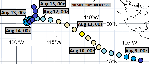In the twelve tracks (made before operationally recognized degeneration), dissipation times ranged between August 10, 12Z