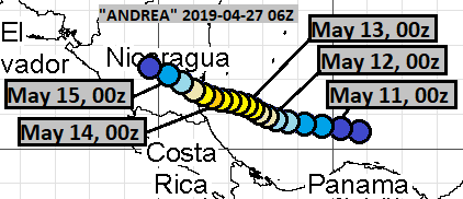 I falsely detected (sub)tropical cyclogenesis in Atlantic (north of equator and west of Greenwich) 134 times in January thru May of 2019. Additionally, false East Pacific cyclogeneses led to crossover into the basin 10 times, and false Gulf of Guinea cyclogeneses led to crossover into the basin 4 times. Tracks were made of 28 systems.
