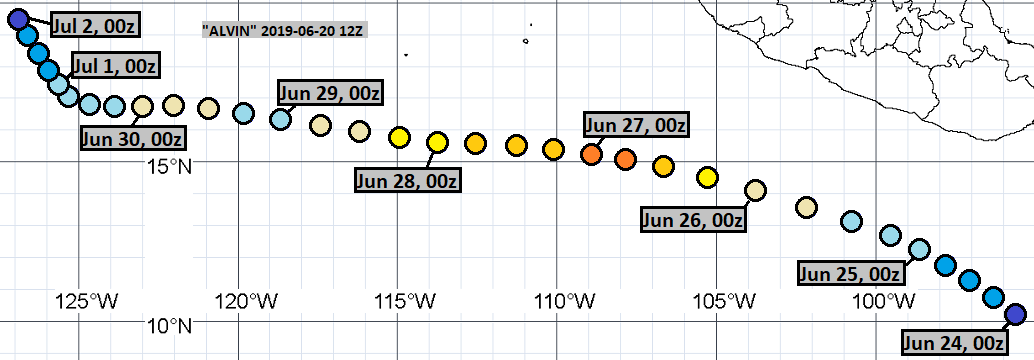 In the 19 tracks, formation times ranged between June 23, 12Z and June 29, 06Z. Average was June 25, 12Z and median was June 24, 12Z.