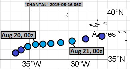 This lone track is identifiable with the frontal zone near the Azores in the following synoptic chart.August 16, 06Z run: