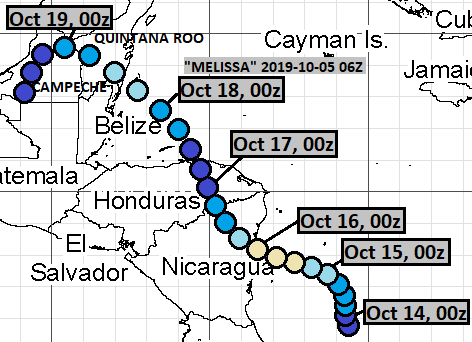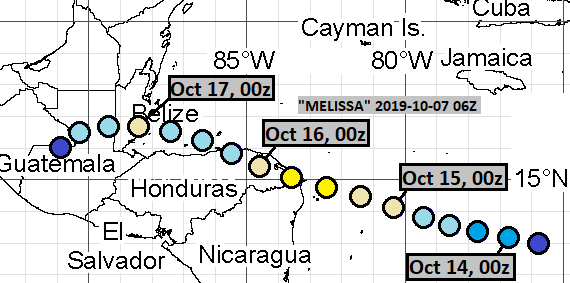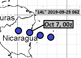 These tracks are identifiable with this extremely low-latitude area of interest briefly monitored by NHC.October 11, 06Z run: