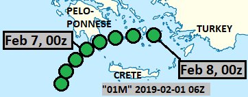 As part of my regular analysis, in 2019, I made 46 tracks in such basins, where neither a local RSMC has been designated, nor a U.S. agency consistently monitors (sub)tropical cyclone activity: Gulf of Guinea, Mediterranean Sea, Black Sea, North Sea and Baltic Sea.