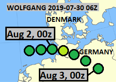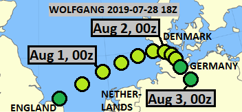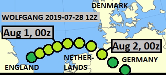 This low pressure system was named Wolfgang by FU-Berlin, and in my opinion, it became a subtropical depression on July 31st at 06Z, and remained such for 30 hours. In the following synoptic chart, it is still over Great Britain.