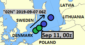 This is identifiable with the extratropical low in Baltic Sea near Sweden in the following synoptic chart.