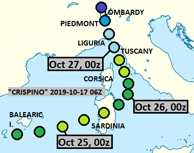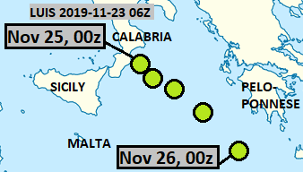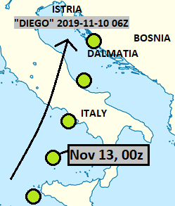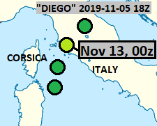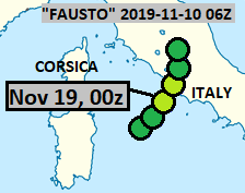 This was closely related system to Bernardo, and indeed, shared the same FU-Berlin name. Here it is shown in Tyrrhenian Sea. It remained non-tropical.