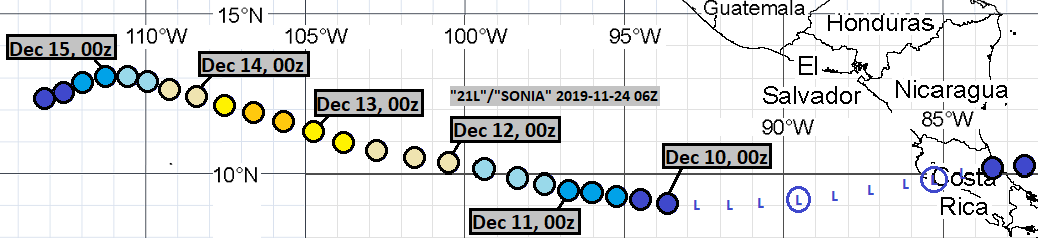 These tracks began in October. This ended up being just disorganized cloudiness (near 10N 115W in the following TWO graphic)