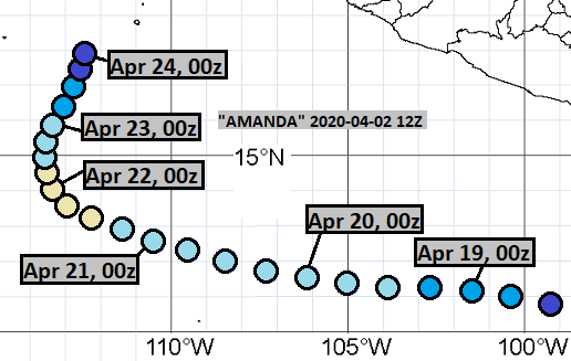I made 53 tracks of Tropical Depression One-E, before it was assessed as a tropical cyclone. I made three more tracks after that point. Additionally, within 480 hours of cyclogenesis, there were 21 instances, when I missed cyclogenesis entirely. Detection rate was good. Peak intensity was hugely overestimated. Timing of formation was originally way too early, while dissipation time was also mostly somewhat too early. Longevity was overestimated. Position accuracy was very good in the long range, and very poor in the short range.