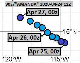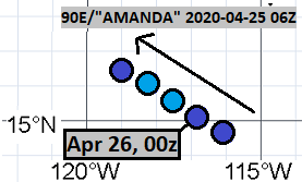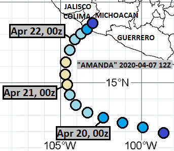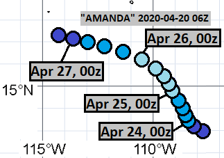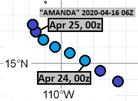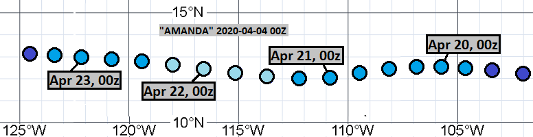 As of this analysis, best track positions are available April 22, 12Z thru April 26, 18Z, and as such, position comparisons are possible only for this timespan.