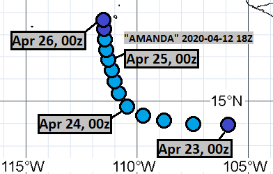In the 53 tracks (made before operationally recognized cyclogenesis), formation times ranged between April 13, 18Z and April 25, 18Z. Average was April 21, 03Z and median was April 20, 12Z.