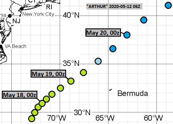 In the 20 tracks (made before operationally recognized cyclogenesis), formation times ranged between May 16, 00Z and May 19, 06Z. Average was May 17, 05Z and median was May 17, 06Z.