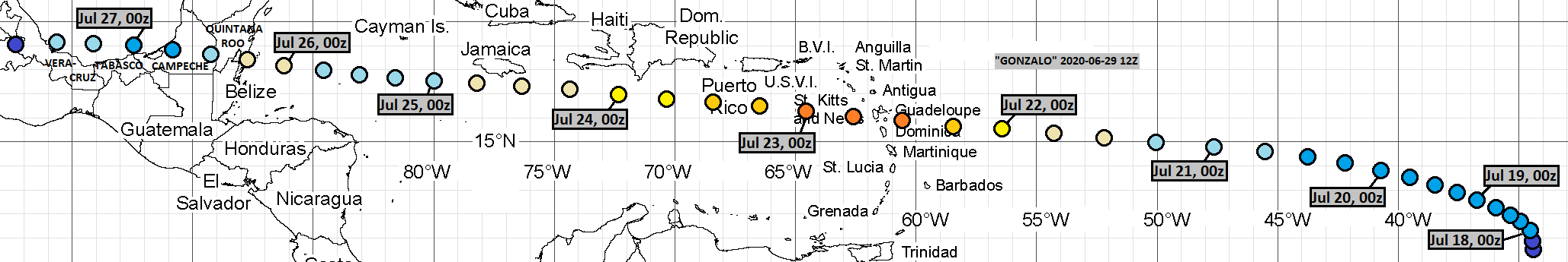 I made seven tracks of Tropical Storm Gonzalo, before it was assessed as