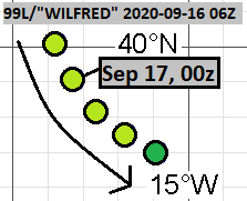 In the two tracks (made before operationally recognized degeneration into remnant low), dissipation times ranged between September 18, 00Z