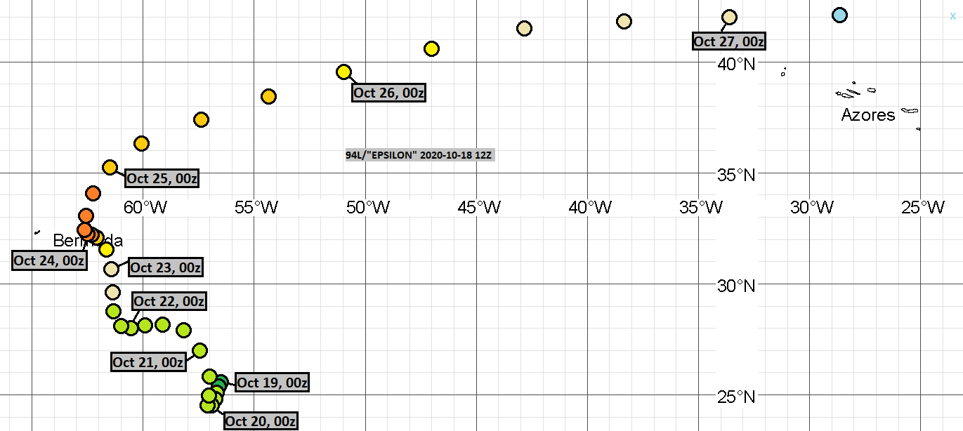 when I missed cyclogenesis entirely. All the detections were at short lead times - even in those, the intensity and longevity were most often greatly underestimated, and Epsilon was projected merely to be subtropical.