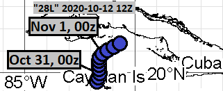 As of this analysis, best track positions are available October 29, 00Z