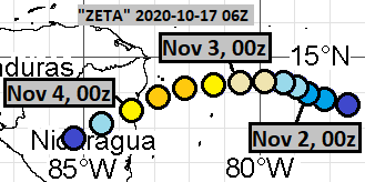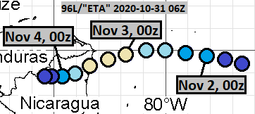 when I missed cyclogenesis entirely. Mostly I predicted Eta to be too short-lived, due to dissipation in Central America (and subsequent genesis of a completely different system in NW Caribbean soon after, but that will be discussed in another post).