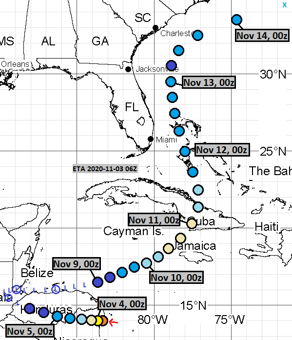 I made six tracks of Hurricane Eta, before it was assessed as