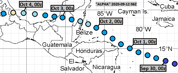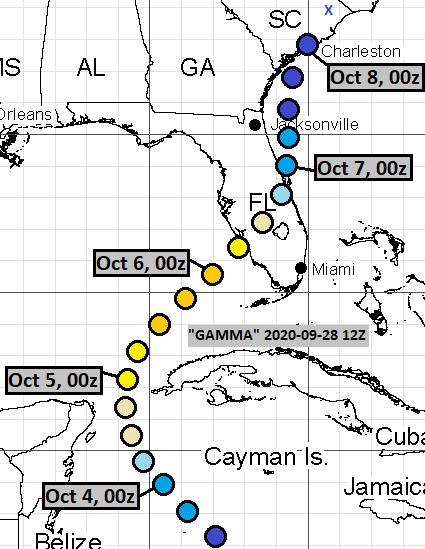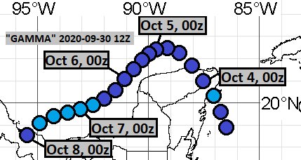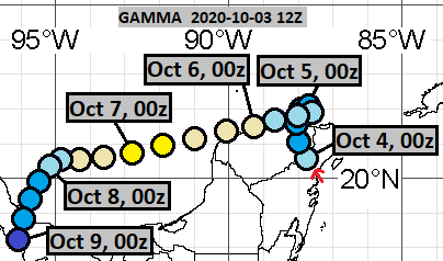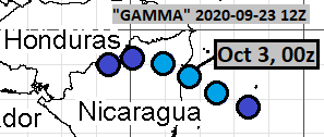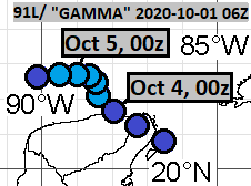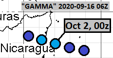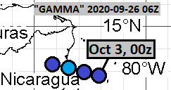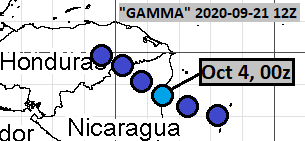 I made nine tracks of Tropical Storm Gamma, before it was assessed as