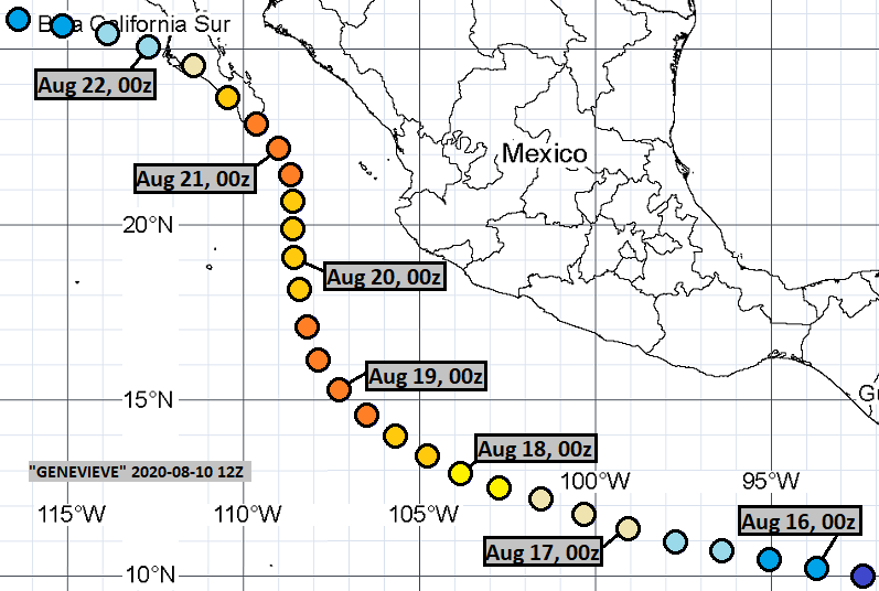 I made fourteen tracks of Hurricane Genevieve, before it was assessed as