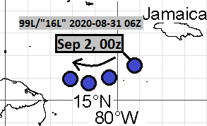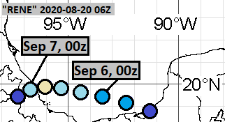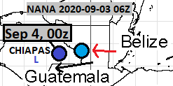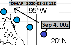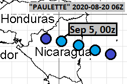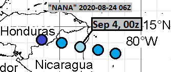 I made five tracks of Hurricane Nana, from four analyses, before it was assessed as