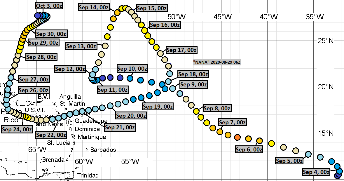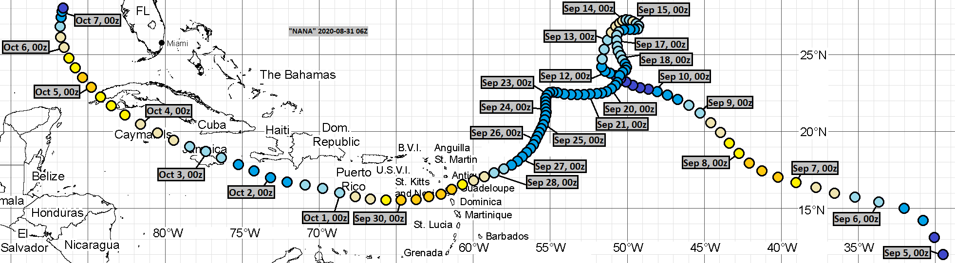 In the eight tracks (made before operationally recognized final degeneration into remnant low), dissipation times ranged between September 9, 12Z