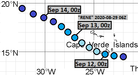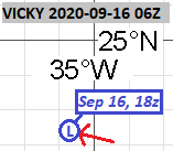 I made five tracks of Tropical Storm Vicky, before it was assessed as