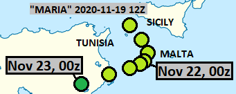 This is identifiable with a non-tropical low, located southeast of Sicily in the following chart.