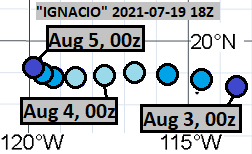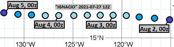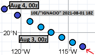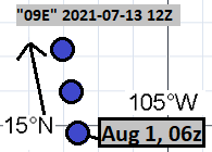 As of this analysis, tropical cyclone report or best track positions are available July 30, 12Z